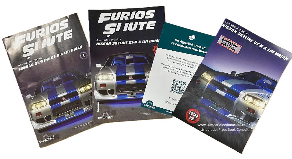 Colectia Nissan Skyline GT-R Fast&Furious KIT scara 1:8 oferita de Deagostini este o colecție UNICA și indispensabilă pentru colecționarii pasionați și pentru iubitorii de machete, este acum disponibilă! Replica fidelă a celebrului Nissan Skyline GT-R din filmul Fast & Furious al lui Brian O'Conner, cu o lungime impresionantă de 58 de centimetri și realizată cu o atenție deosebita la detalii, este oferita în 110 numere de revista spre asamblare (fiecare număr conține piese pentru construcție și reviste cu ghid pentru montaj)
